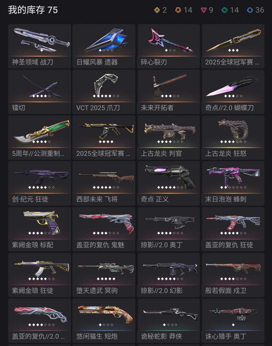 白银✨25冠军套.VCT爪刀.苍龙之刃.镭切.西部斧.奇点蝴蝶/创纪元.盖亚.紫金/可排黄金铂金