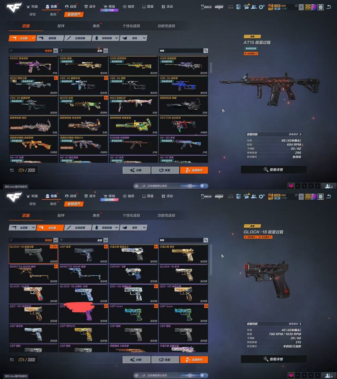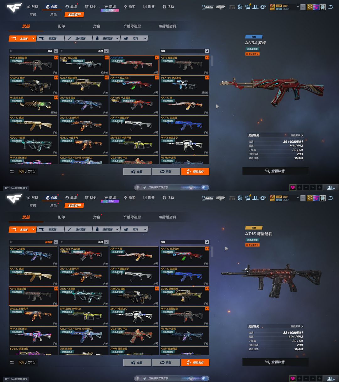 AT15能量过载✅AN94罗峰✅FMAS镭射✅G36K望舒观阙✅M200裂空之翼✅蝴蝶刀干将莫邪✅