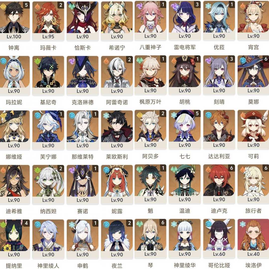 速玩⚡️40五星角色【7装扮】❤️4满命琴满迪卢克满莫娜✨百级5命钟离✨21玛薇卡2阿蕾奇诺2纳西妲