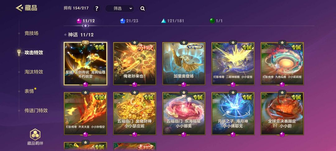 278小小英雄/1卓越至臻锐雯/8神话亚恒 莉莉娅 孙悟空 塔姆 纳财大帝/154攻击特效/28棋盘