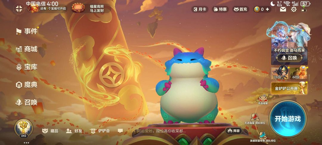 等级242级,小小英雄数量98个,攻击特效数量17个竞技场2个,零氪喜欢可租谢谢