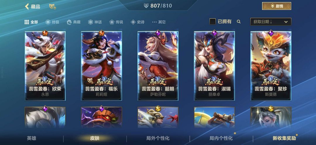 全皮肤807个|春节系列新皮肤|大师可排位|酸辣粉丽桑卓|逃跑拉黑