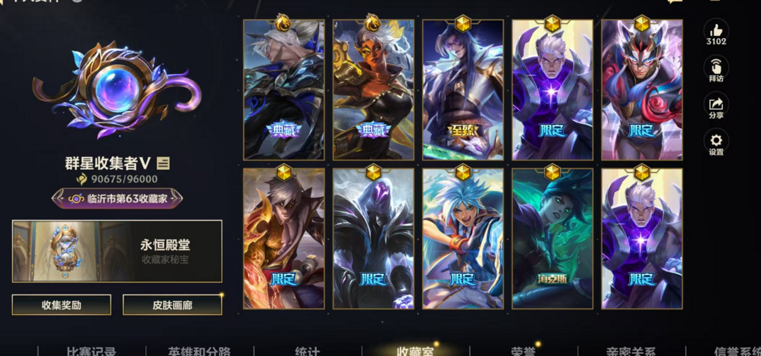 可排位551皮✨7神话56传说典藏超武乾坤征服莎弥拉孤拳瑟提✨至臻心之钢永恩白金学长乘龙破渊李青灰烬