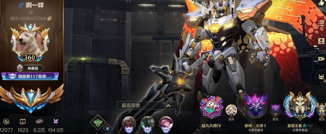 新赛季王者段(金色翅膀)⭐️多个国服英雄⭐️511皮肤⭐️天神下凡⭐️八神话⭐️全英雄