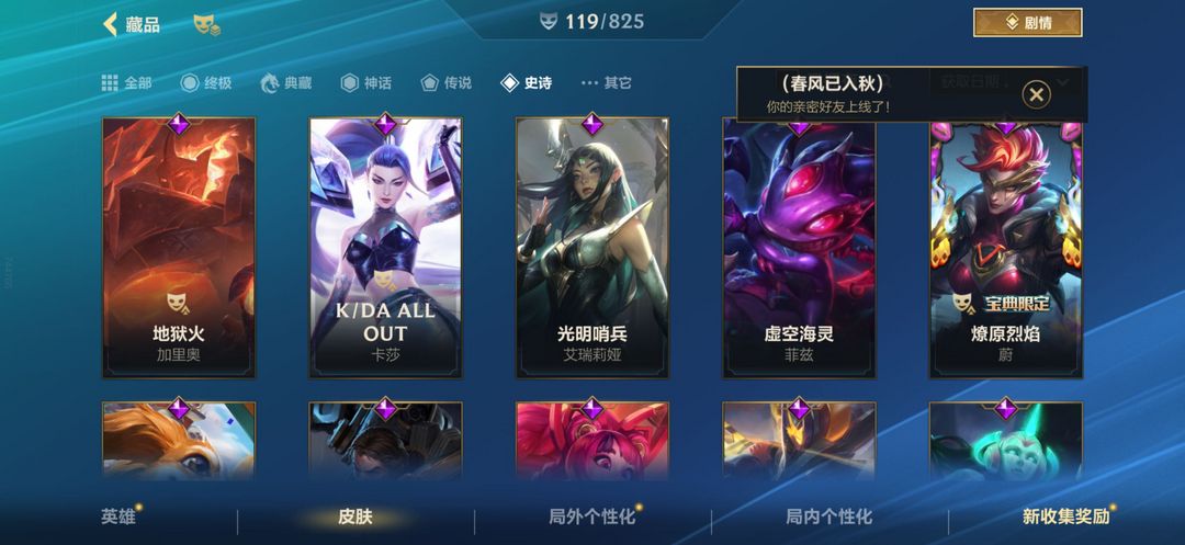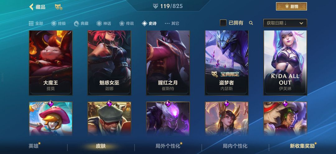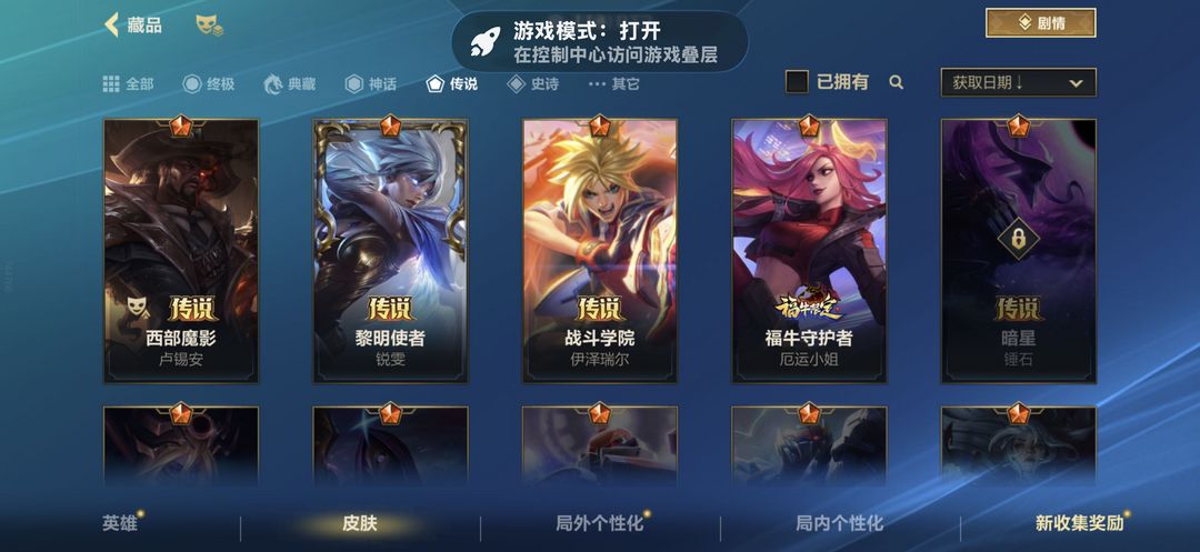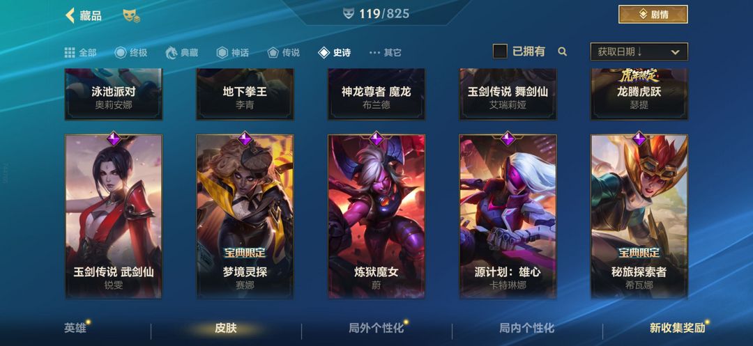 低段位炸鱼号传说皮肤4个,史诗皮肤41个