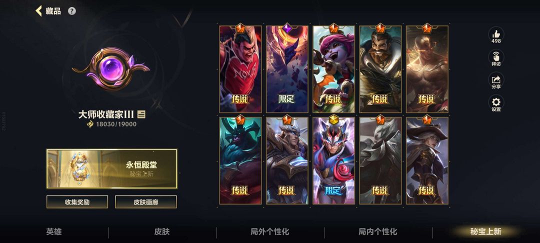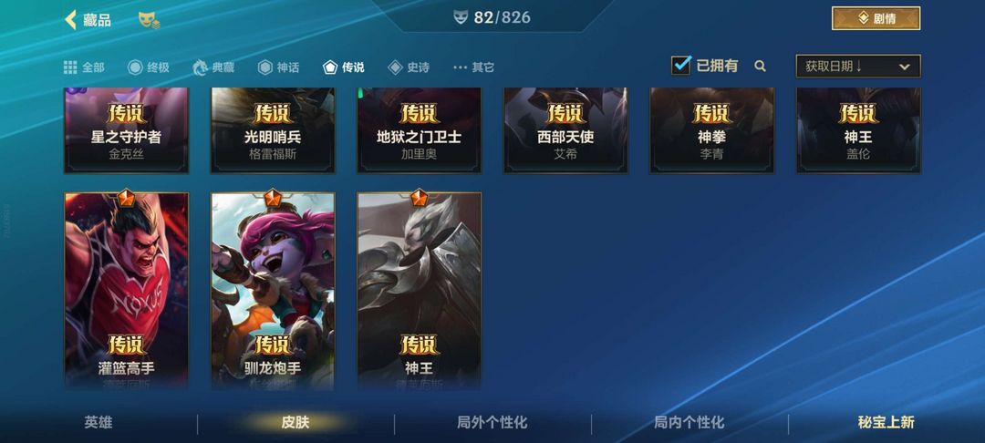 之前经常玩 现在要上学不玩了 低段位 适合带妹 上单皮肤居多 其他位置也有