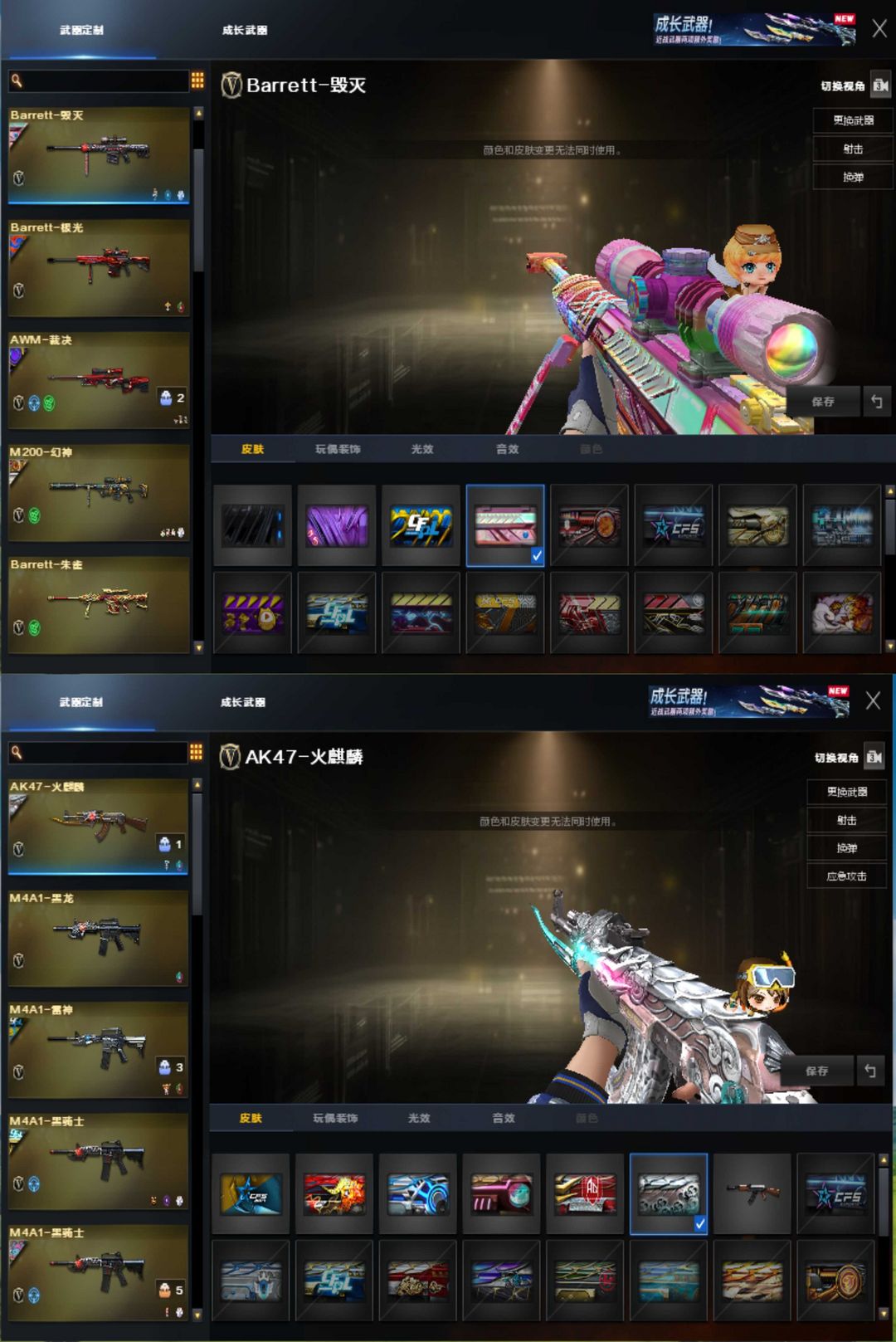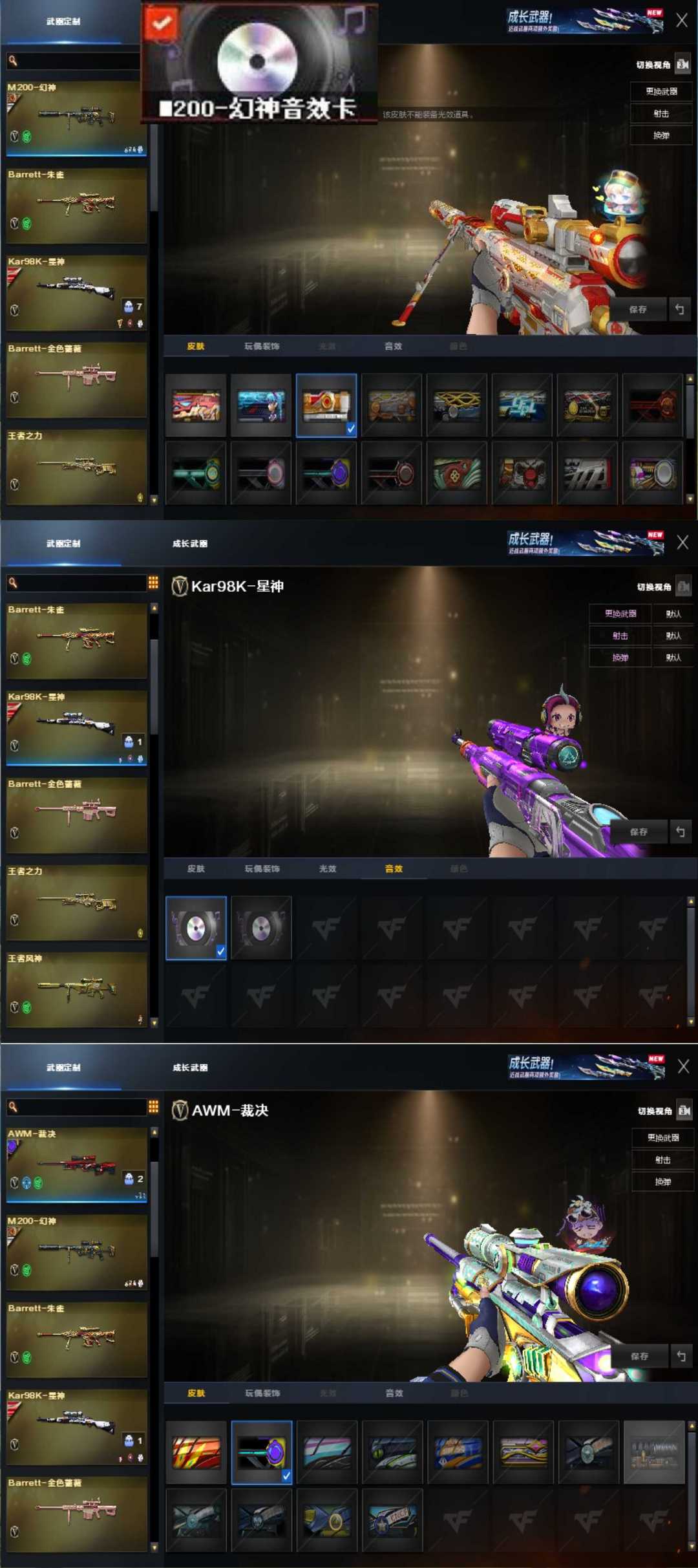 传奇5♥新AG幻神③皮音效卡星神三件套巅峰荣耀裁决QBZ三件套♥G36幻影银翼柯尔特x2♥蝴蝶6烈龙