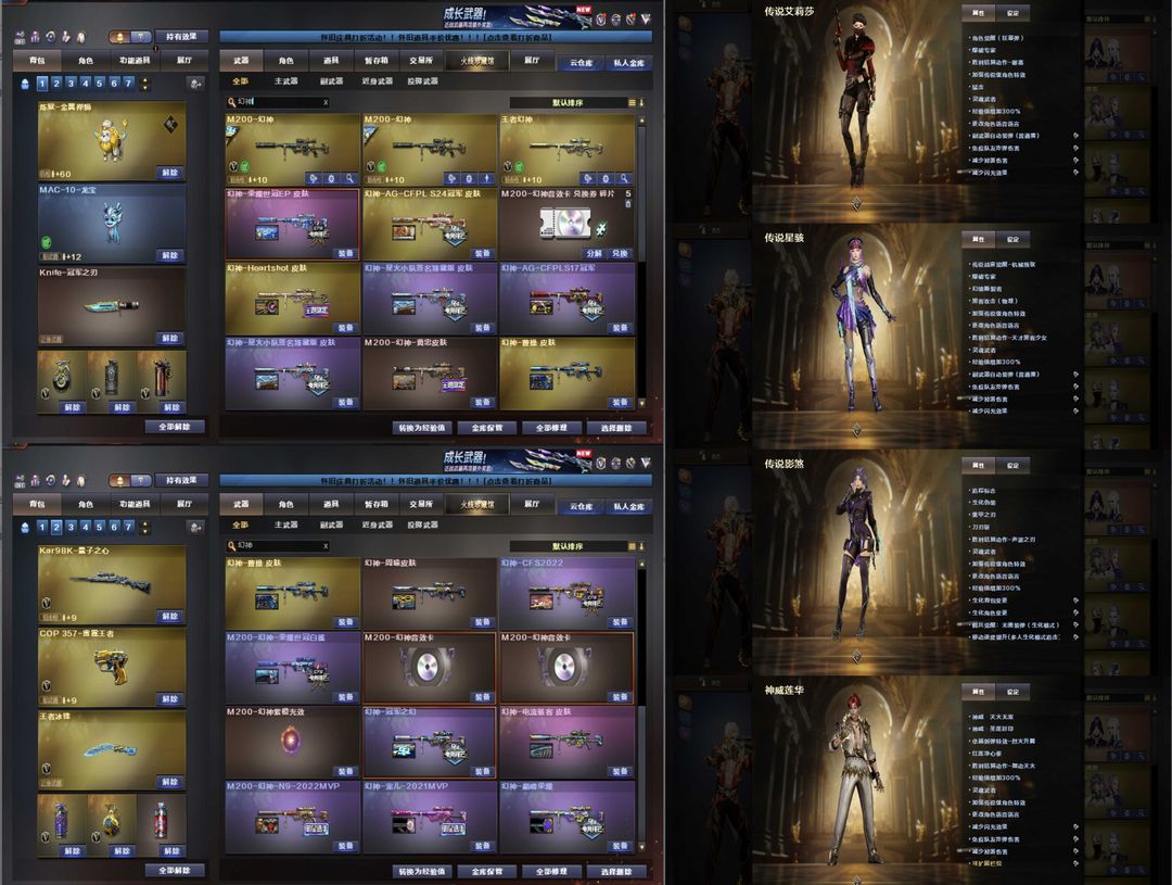 限制: 撤单率<60%才可租用此帐号装备描述:新活动已氪神威莲华天戎天袭银翼世冠EP量子之力冥王玄豹金翼禅师酷酷小狮神秘礼盒S24冠军裁决巅峰荣耀白虎两个白鲨新活动女团传说幽瞳幻神皮肤星火曹操QBZ24宠儿炽芒冠军已秒,星神冠军已秒都有音效卡 新增满配八面凌龙✚13把炽芒蝶刃十多个四防角色六烈四盘三炼狱斗鱼虎牙等..... 基本上皮肤排位爆破生化挑战武器都非常齐全,很多重复的都在金库老板们想玩可以自己拉出来 近500V178王者3页金角色几乎满角色/双幻神6皮肤光效音效卡/基本新出的武器都氪了/虎牙斗鱼皮肤各类copusp柯尔特/满背包神器刀带皮肤 目前段位:荣耀之巅百豆-氪金13万左右,文明游戏人人有责,禁止开挂否则可能追究全部责任。