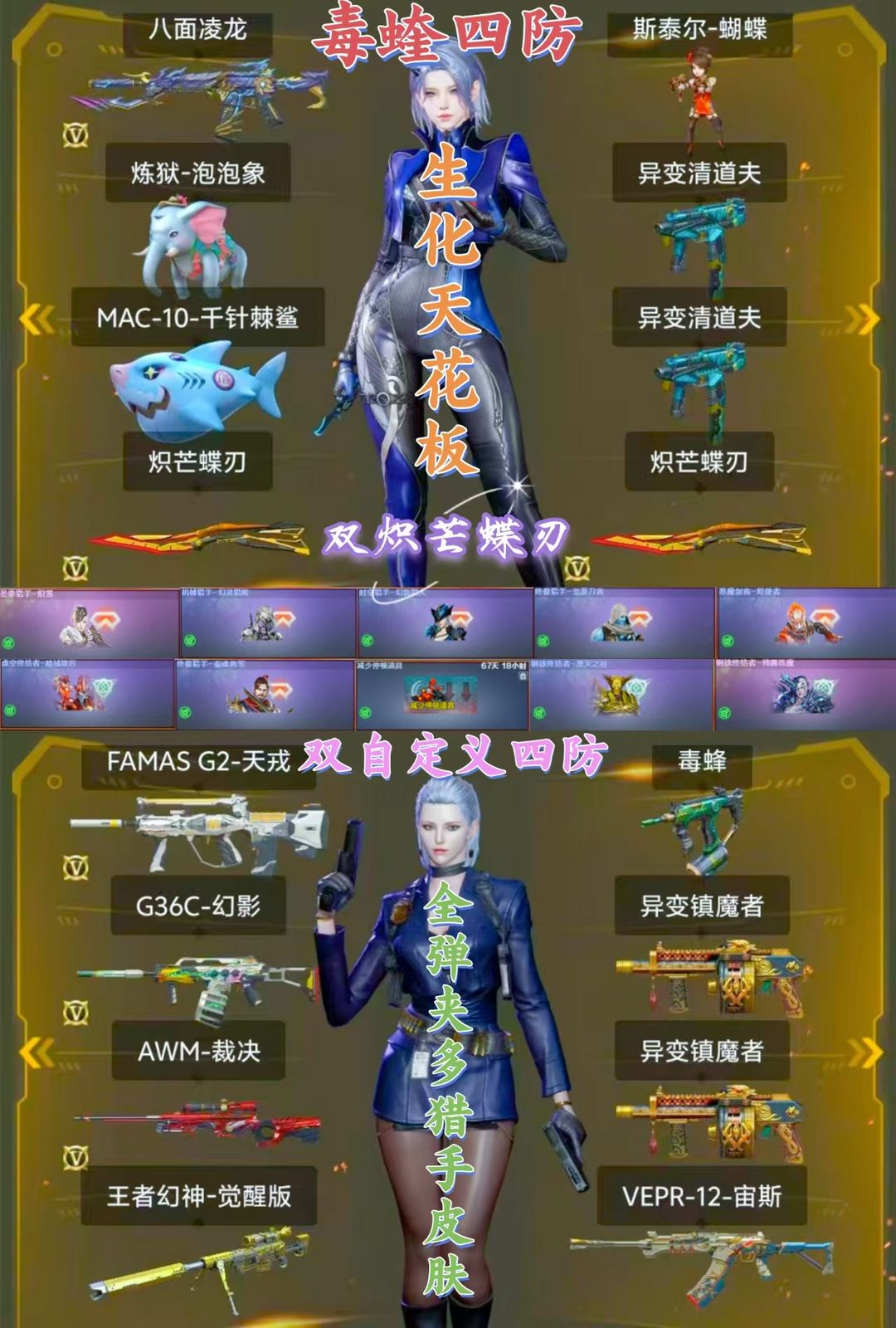 双炽芒蝶刃毒蝰术士+炼狱泡泡象八面凌龙天戎+蝴蝶双清道夫毒蜂异变镇魔者幻神G36C-幻影生化6盘6烈