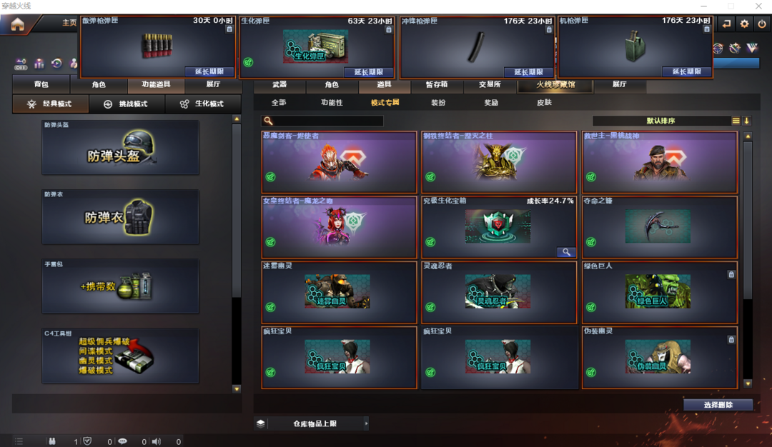 限制: 租号2次及以上 |装备描述:排位:可以----------------生化全装(生化变更背包、查看生化僵尸血量):无需换弹、6烈龙、6盘龙、1炼狱、毒蜂、宙斯、双面神、黑龙吞噬者、死亡之眼、MAC-涂鸦、、生化减速雷、超级对讲机、、全部弹匣、全部僵尸、、、、、、、、、、、、、、爆破四防:幻神1皮+音效(世冠24ag)、王者风神、USP雷暴、裁决(巅峰荣耀)、毁灭(定军杨威)、火麒麟、雷神、黑骑士、朱雀、黑龙、天启、无影、黑鲨、王者凤吟、王者之光、、、、、、幻神音效、裁决音效、毁灭音效、极光音效、黑骑士音效、、、、、、、爆破四防(灵狐者职业经理)生化角色:隼、小红