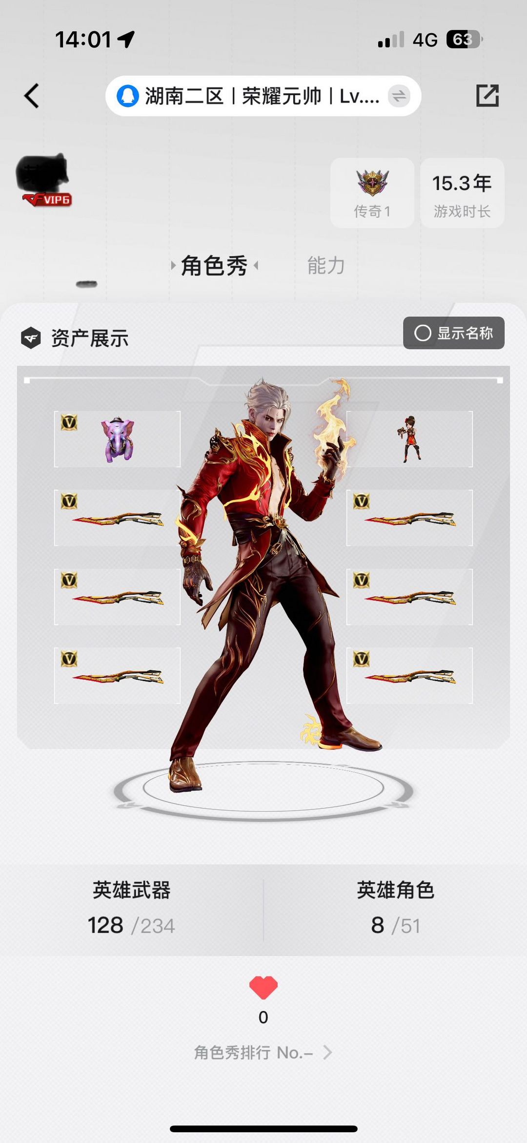 装备描述:南部136V双全装,神威莲华,奇幻泡泡象,6把炽芒蝶刃,双玄武雷,追击爆破天花板传说影煞,传说艾莉莎,传说光耀,加特林炼狱,幻神,Kar98K星神,QBZ金色蔷薇,柯尔特竞技荣光,USP雷暴,G36C幻影,王者风神觉醒版,王者之啸,3烈5盘龙斯泰尔蝴蝶,六套幻神皮,极光皮极光音效卡,毁灭、AWM裁决音效卡等