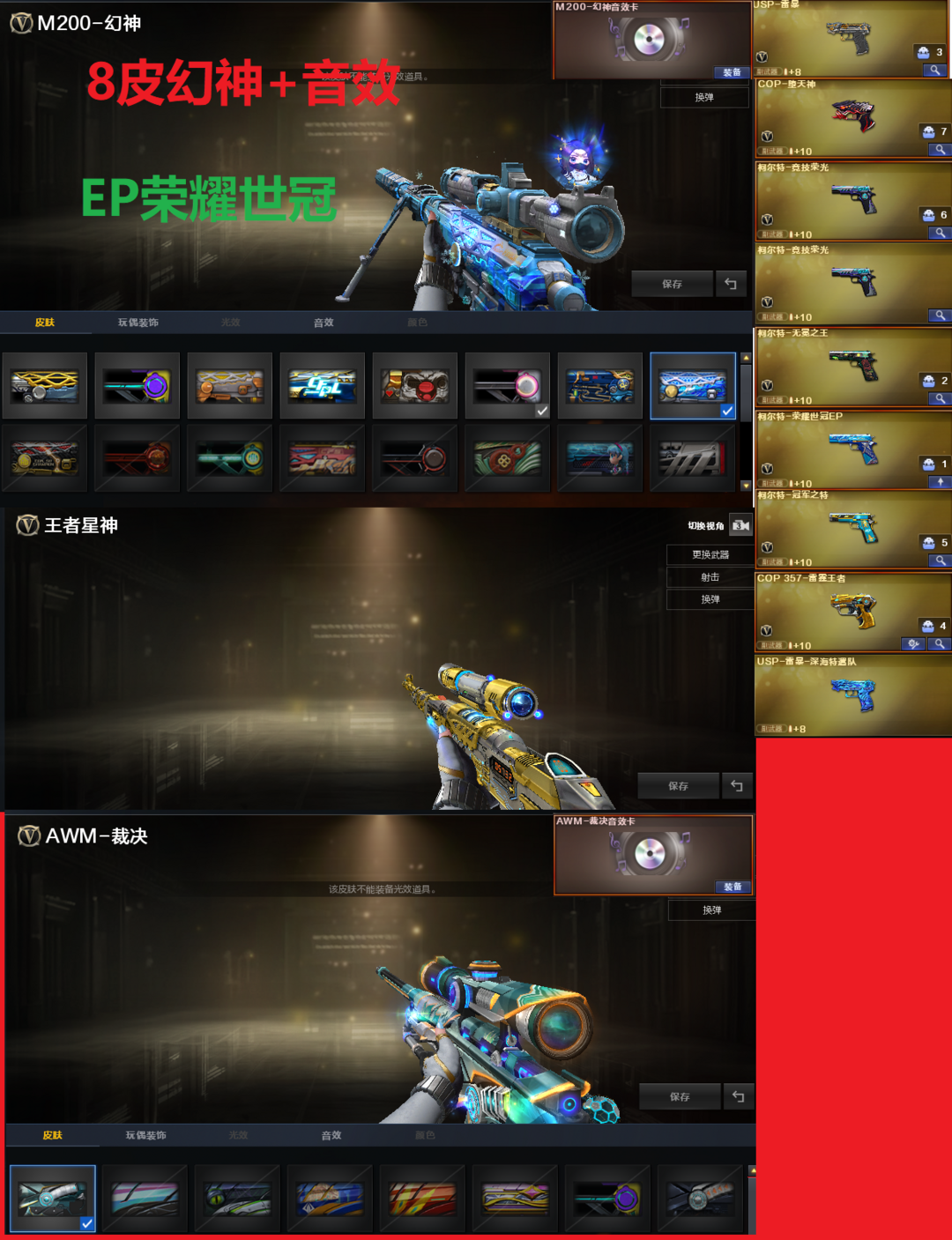 8皮幻神音效【EP宠儿】星神全手枪|裁决音效ぃ冠军薇白虎200V幻影圣角音效|传说女帝妮妮ぃ四防