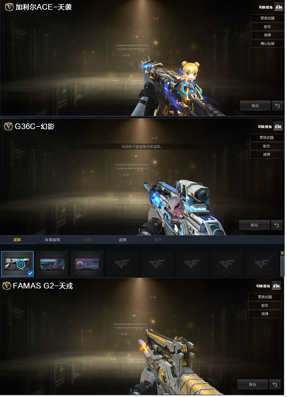 加利尔天戎|G36幻影2皮幻神【电竞之星】USP冥王|白虎蔷薇音效100V炽芒蝶刃|爆破四防