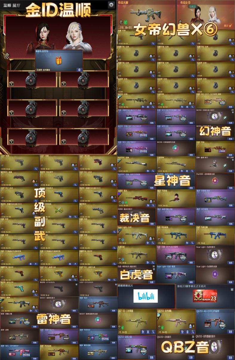270豆-金ID温顺❤王者凌虎❤女帝幻兽X⑤❤幻神新AG10皮音❤星裁三件套❤顶级副武❤枪王之王名片