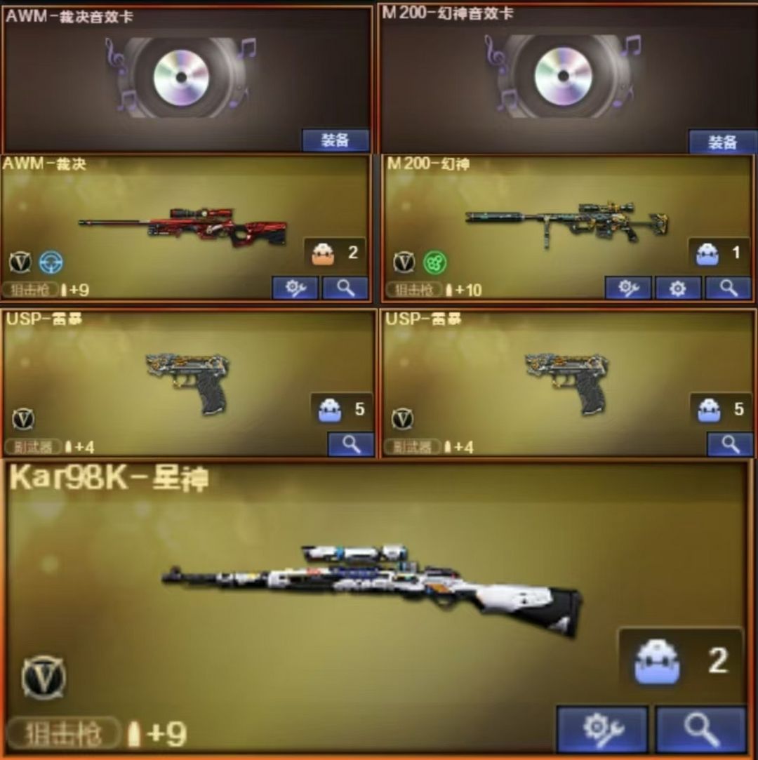 幻神裁决双音效卡⭐裁决皮两把usp雷暴⭐星神⭐白虎马枪⭐隼+六烈六盘蝴蝶炼狱生化爆破双全装