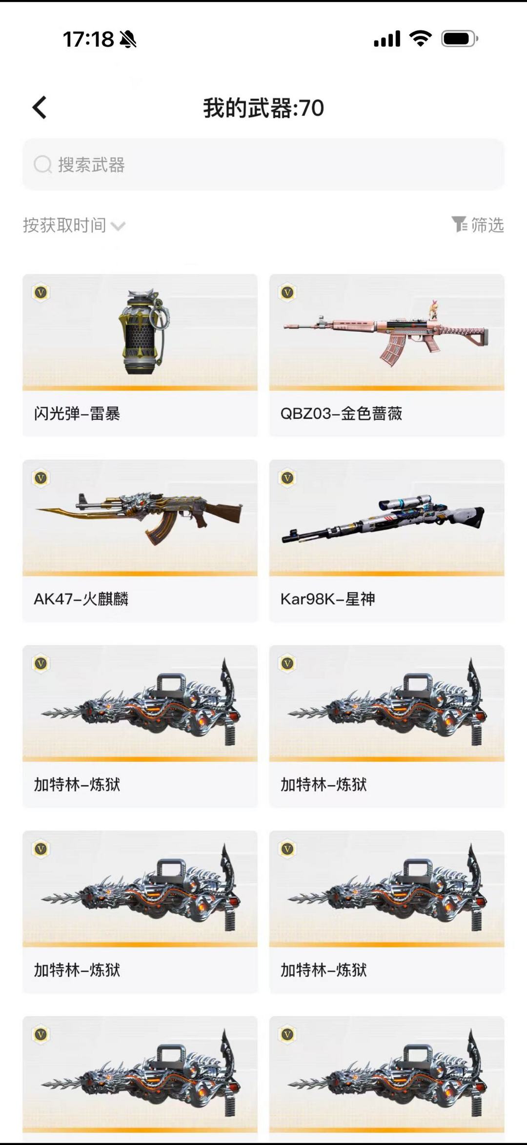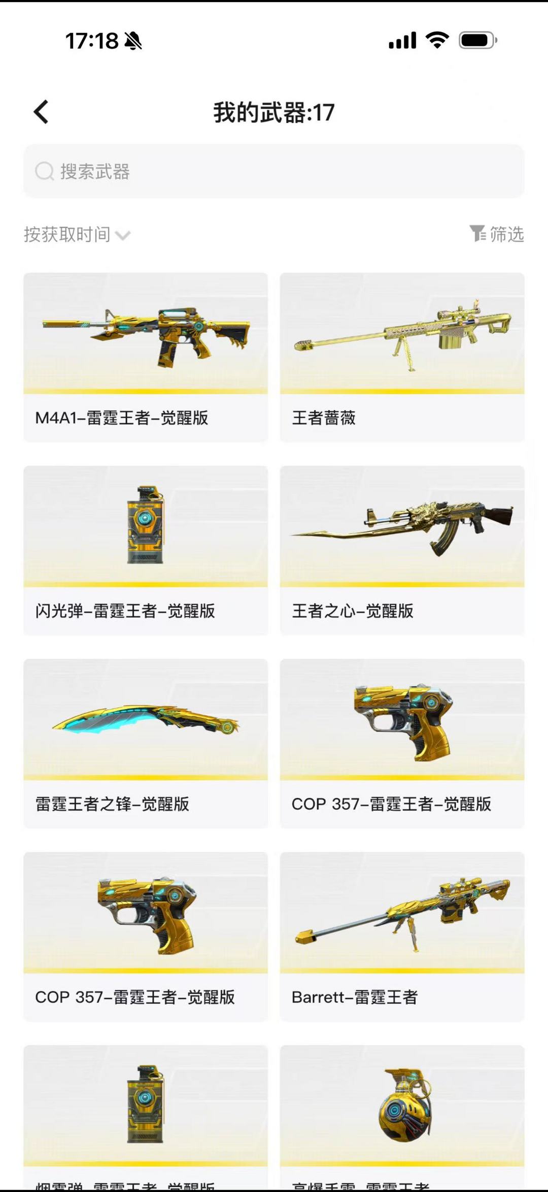 装备描述:王者武器:M4A1-雷霆王者-觉醒版;王者蔷薇;炫金骑士;炫金超新星;闪光弹-雷霆王者-觉醒版;王者之心-觉醒版;雷霆王者之锋-觉醒版;COP 357-雷霆王者-觉醒版;Barrett-雷霆王者;烟雾弹-雷霆王者-觉醒版;高爆手雷-雷霆王者;王者雷怒;QBZ-03-王者蔷薇-觉醒版;王者之决-觉醒版;炫金火麒麟;炫金雷神;王者之锋-觉醒版;王者之灵-觉醒版 英雄武器:G36C-幻影;AA-12-雷霆;龙啸;擎天;超新星-热带奇洋;龙啸-热带奇洋;USP-雷暴;闪光弹-雷暴;斩神刀-雷暴;高爆手雷-雷暴;烟雾弹-雷暴;手雷-热带奇洋;QBZ03-金色蔷薇;AK47-火麒麟;Kar98K-星神;加特林-炼狱;M4A1-青龙;9A91-烈火;传说光耀;M4A1-雷神;沙鹰-修罗;烟雾弹-幻灵;高爆手雷-幻灵;闪光弹-幻灵;COP 357-幻灵;传说圣灵;汤姆逊-烈龙;Scar Light-白虎;龙啸-堕天神;M4A1-堕天神;烟雾弹-堕天神;高爆手雷-堕天神;闪光弹-堕天神;麒麟刺-堕天神;M200-幻神;Barrett-毁灭;屠龙;幻灵之锋 角色:传说女帝;雨棠;猎狐者;刀锋;潘多拉;雷霆