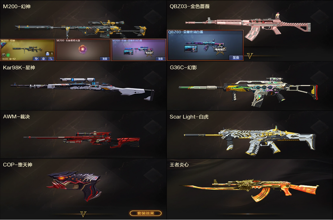 爆破❤幻神白鲨+星神裁决❤QBZ蔷薇白鲨+G36C幻影白虎+王者炎心COP堕天神❤4防灵狐者