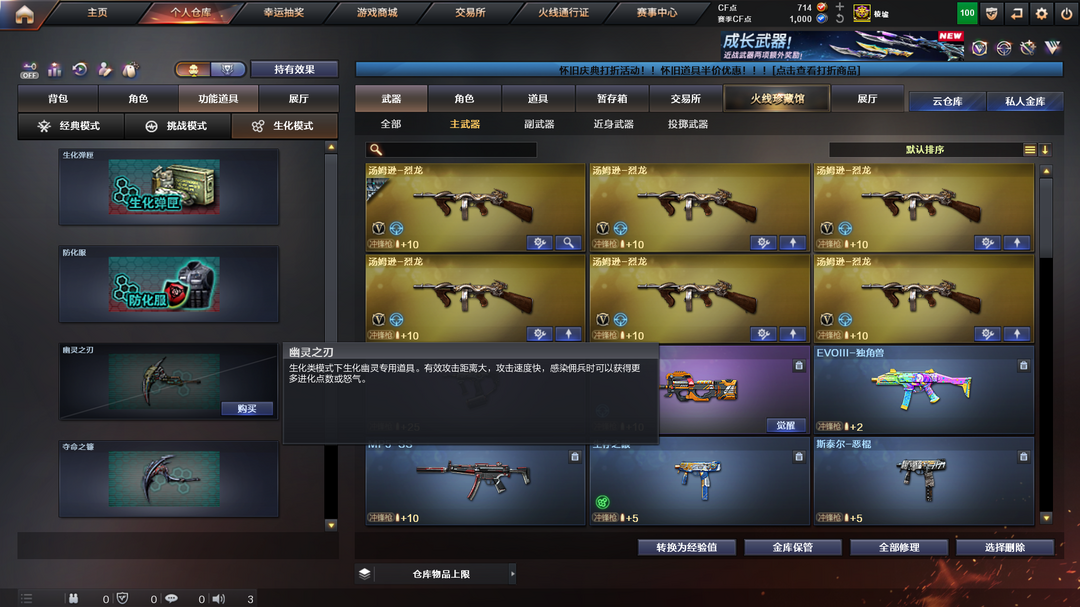 装备描述:150V生化极品号.生化武器齐全.4防角色传说武器
