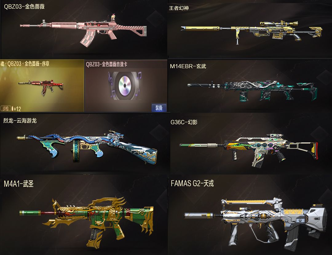 传说灵眸✅幻神三件套(2皮)✅QBZ裁决三件套4皮✅朱雀✅2022幻神音效卡+裁决音效卡✅5烈龙毁灭