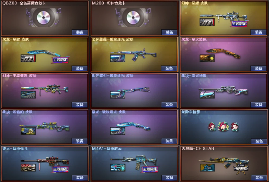 幻神星耀电流风神竞技音效卡+裁决运输船秘银☎QBZ破浪音效卡+幻影白虎+炽芒蝶刃破浪☎4防云悠悠+隼