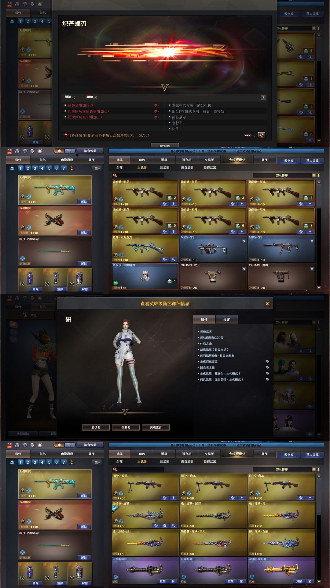 装备描述:☢️生化号|炽芒蝶刃|蝴蝶6烈|炼狱5盘|生化背包不换弹显血|传说幽冥裁决幻神星神|幻影金蚀女猎手皮 喜欢本账号请点 ☆收藏☆ 方便下次租用,谢谢光临惠顾!