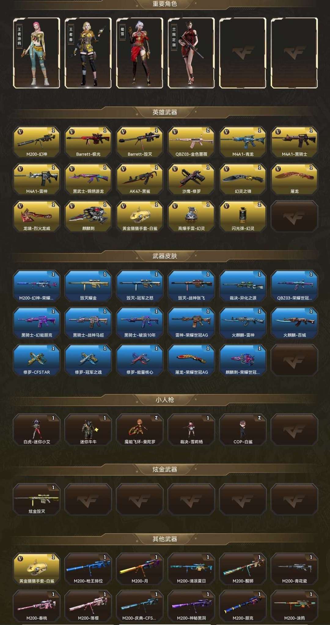 M200幻神+荣耀白鲨皮肤;QBZ+荣耀白鲨皮肤;麒麟刺+荣耀白鲨皮肤等。可排位!