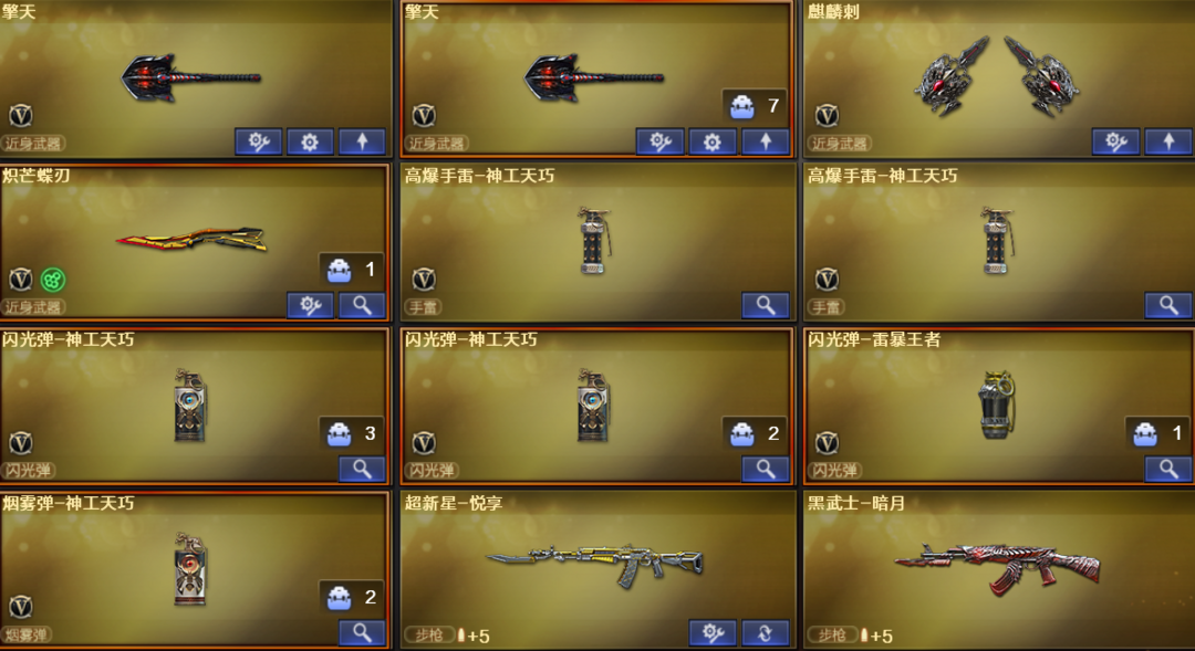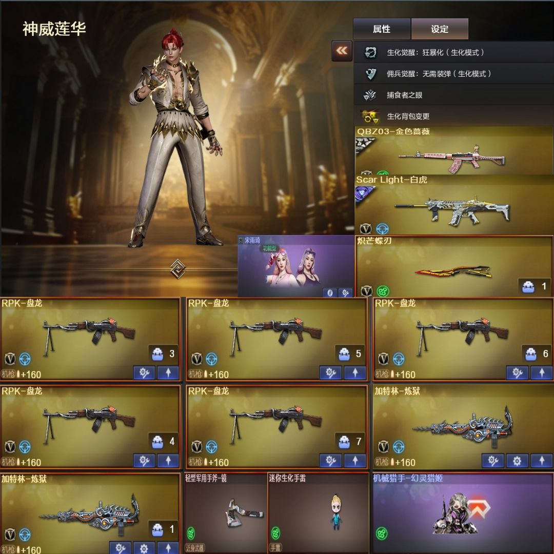 四防传说莲华、炽芒蝶刃、5盘双炼狱、手斧镜、双妖姬雷、宋雨琦、白虎、QBZ、两字ID