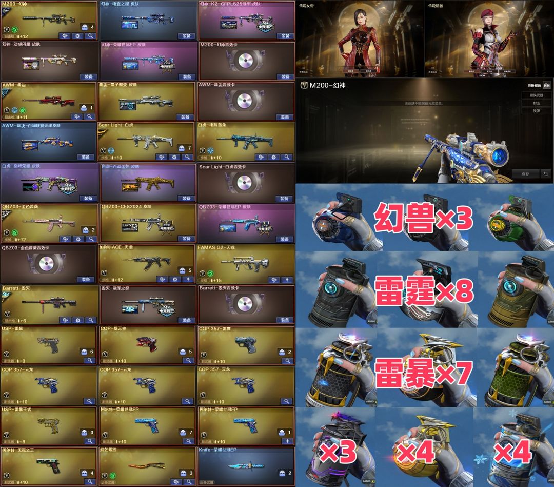 枪王4【北部】传说女帝+星骇+幻兽×3+加利尔+EP套⭐幻神KZEP4皮音⭐裁决套白虎套蔷薇套天戎