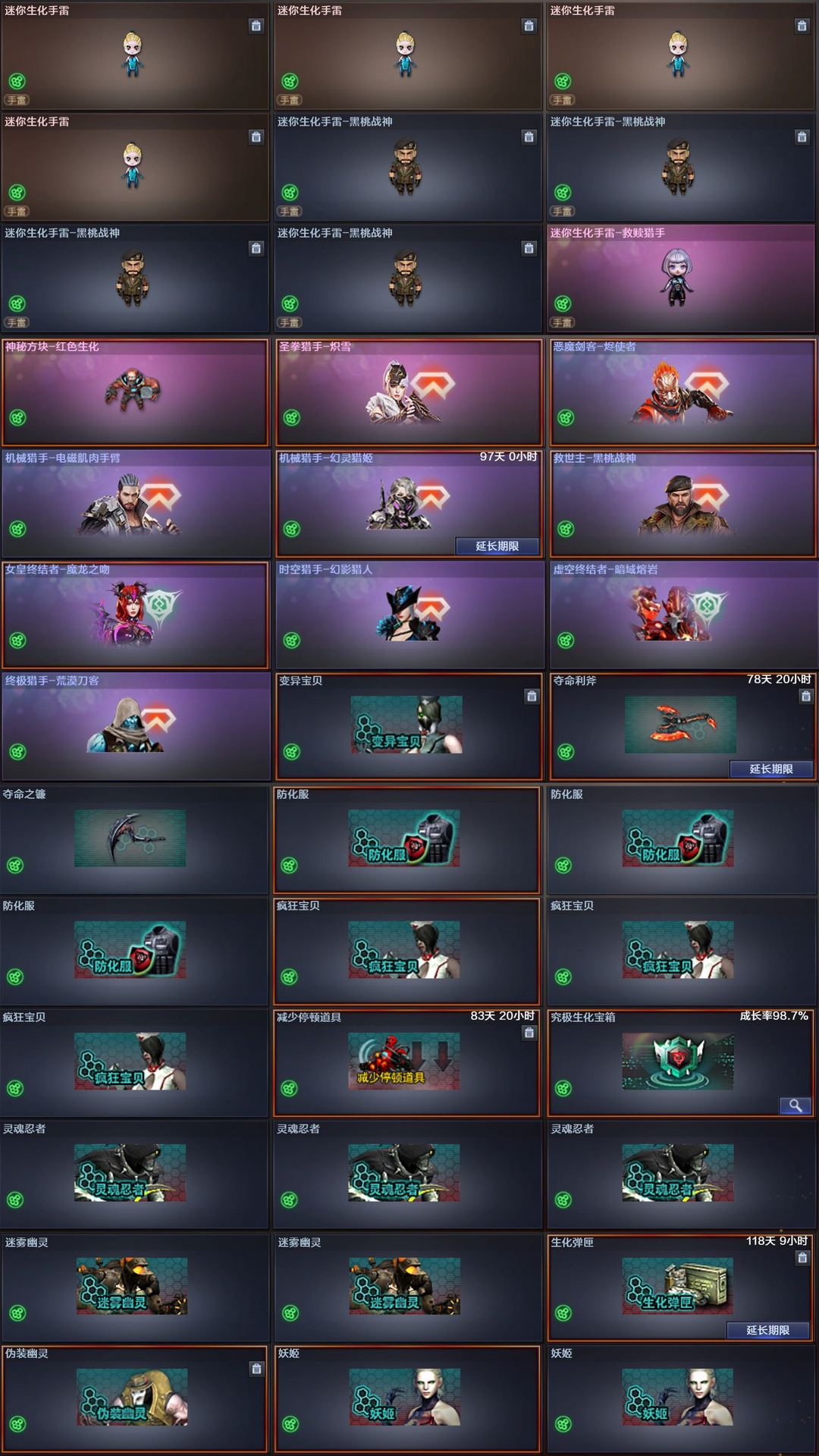 神威莲华虹儿双炼狱金翼禅狮6盘6烈清道夫蛇影双骄蝴蝶萌兔飓风双雄双宋雨琦4把炽芒蝶刃*4天戎幻影