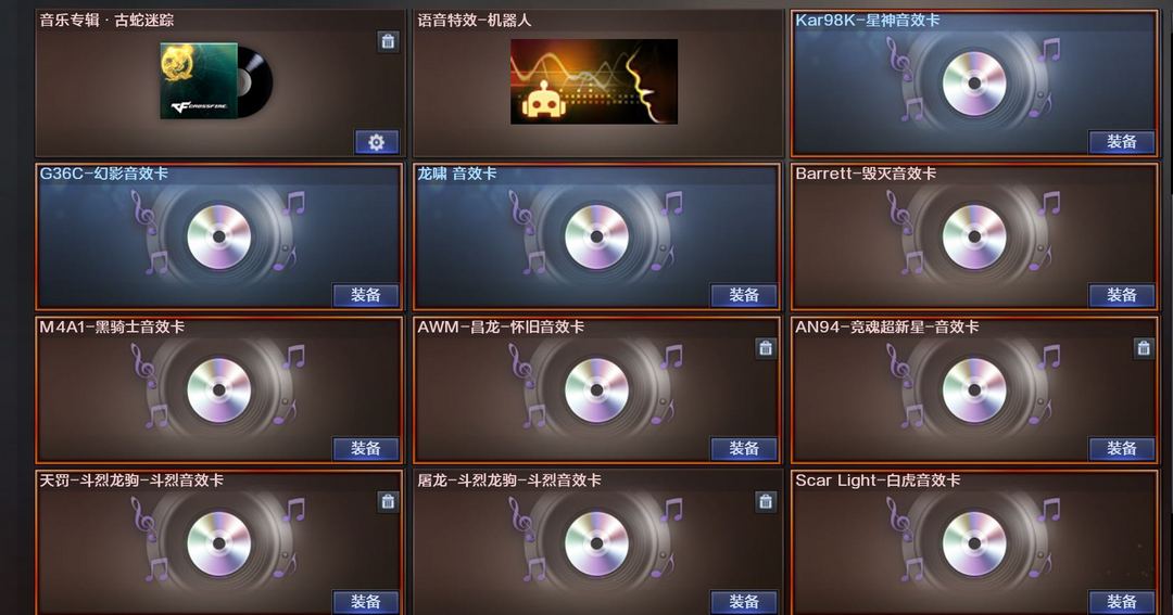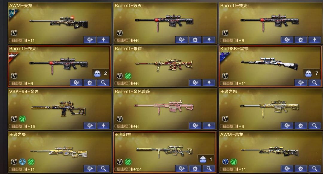 装备描述:传说艾丽莎➕QBZN9皮肤➕G36C幻影破浪逐光带音效卡➕98k傲竹金蛇带音效卡➕Scar Light白虎常旭皮带音效卡➕Scar Light玄豹➕王者幻神➕王者裁决➕冠军之特➕QBZ银翼➕荣耀世冠白鲨➕2把USB冥王➕2把炽芒蝶刃➕巴雷特星空带音效卡➕朱雀➕COP白鲨➕星神璀璨➕纸灯笼龙啸带音效卡➕屠龙星耀➕VSA金噬