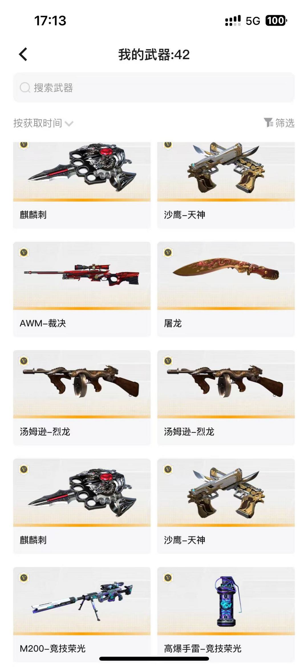 装备描述:英雄武器:英雄武器:AWM-裁决;G36C-幻影;M200-幻神;汤姆逊-烈龙;麒麟刺;沙鹰-天神;屠龙;M200-竞技荣光;高爆手雷-竞技荣光;闪光弹-竞技荣光;烟雾弹-竞技荣光;擎天-竞技荣光;柯尔特-竞技荣光;AN94-超新星;AK12-天启;Kar98K-星神;斩神刀-雷暴;M4A1-黑龙;闪光弹-雷暴;AK47-火麒麟;Barrett-毁