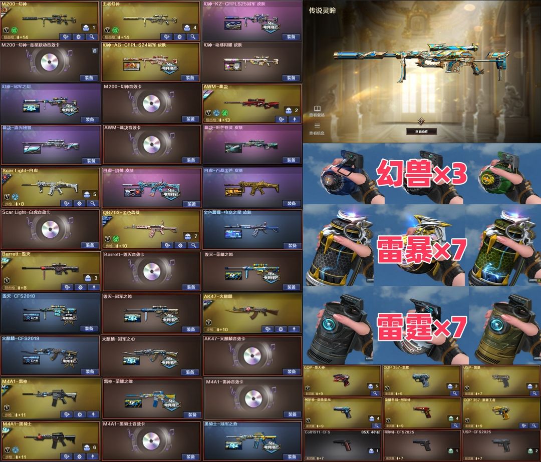 222豆【北部】传说灵眸+幻兽×3⭐幻神KZ4皮音+王幻⭐裁决套usp雷暴cop×3世冠特白虎拼搏套