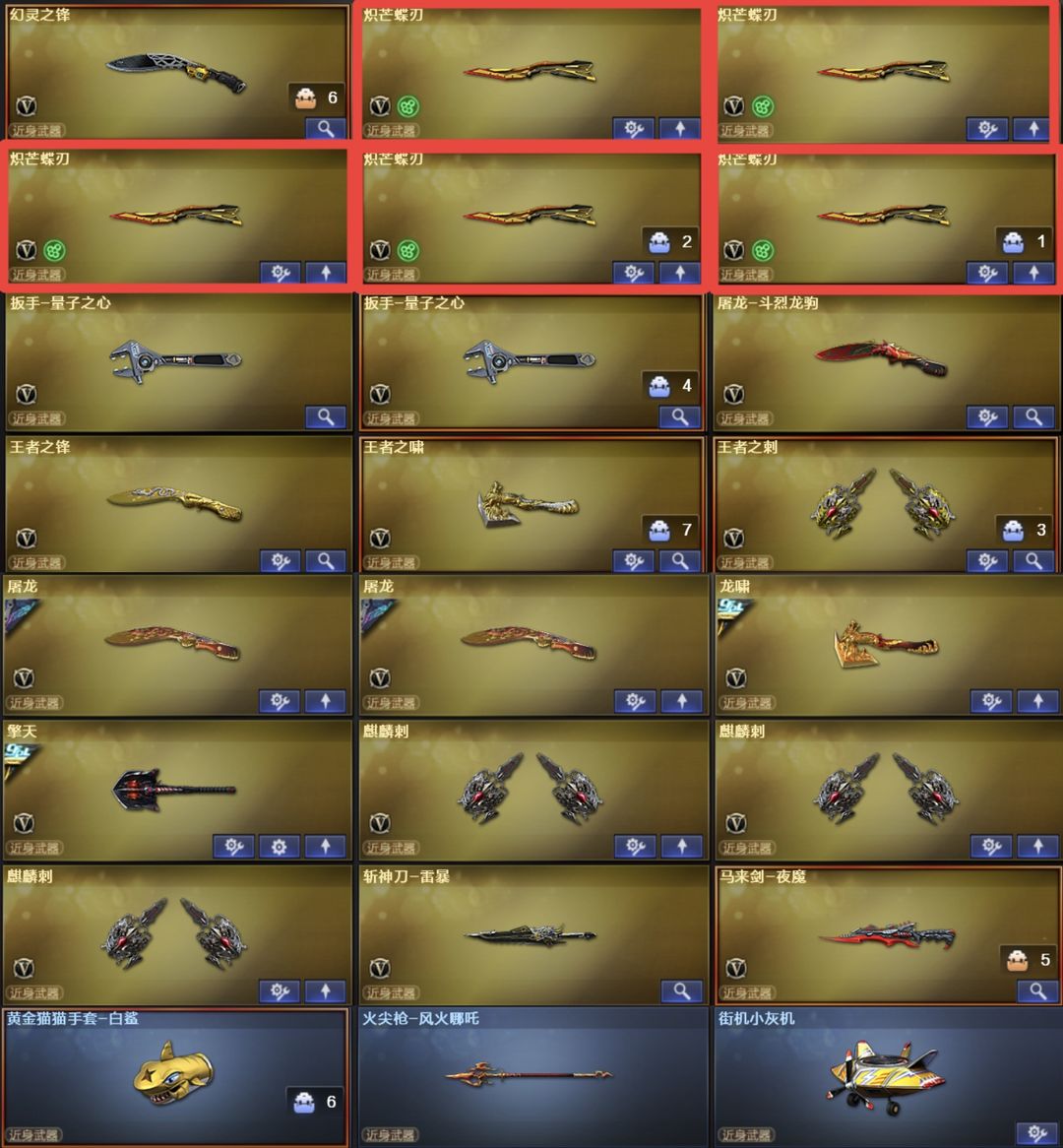 神威莲华浩劫虹儿隼双狮国王金翼5把蝶刃蝴蝶八面6盘烈全猎手冠幻冠特g36幻影裁决白虎蔷薇巅峰荣耀鲨臂