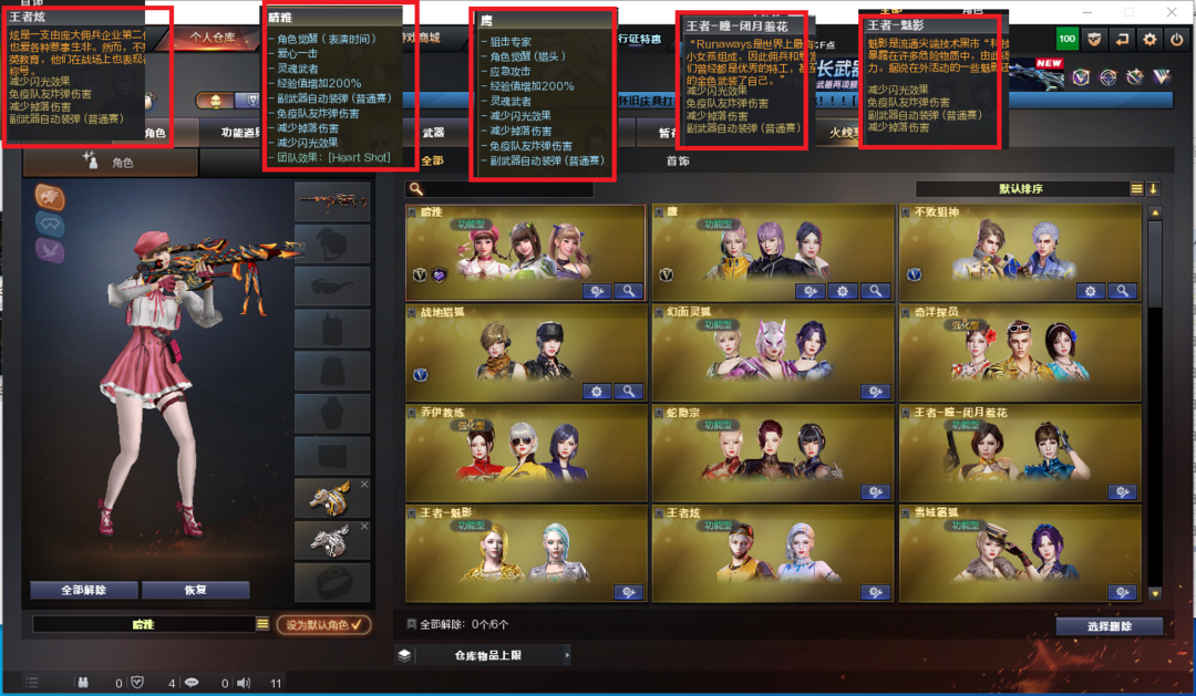 装备描述:排位:可以、、、、、、、、、、、、、、、爆破四防:幻神9皮(EP荣耀、23白鲨、电竞之星、宠儿、白鲨、冠军之幻、2022、星耀、电流骇客皮肤)、传说幽瞳、98K星神、2个USP雷暴王者、COP幻灵、2个柯尔特竞技荣光、2个无冕之王、COP雷霆王者、COP云龙、EP荣耀柯尔特、G36幻影、白虎、QBZ金色蔷薇、QBZ云龙、炽芒蝶刃、、、裁决音效、星神音效、雷神音效、黑骑士音效、、、7套幻灵、1套竞技荣光、1套雷暴王者、、、爆破四防(晴雅、鹰、王者闭月羞花、王者魅影、王者炫)