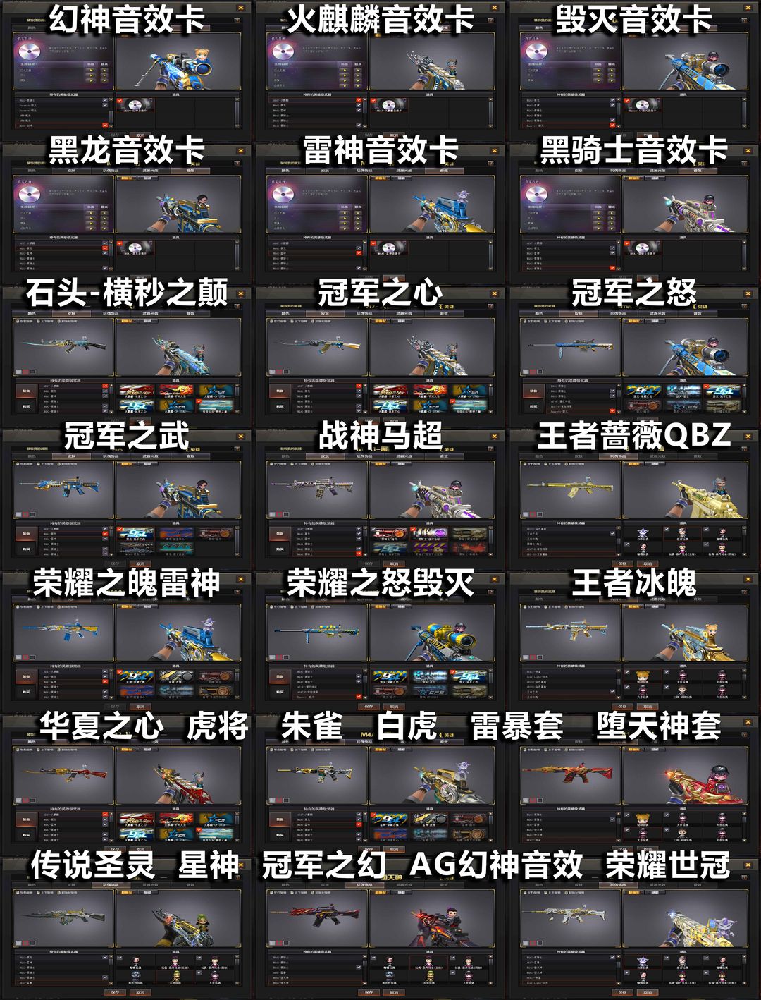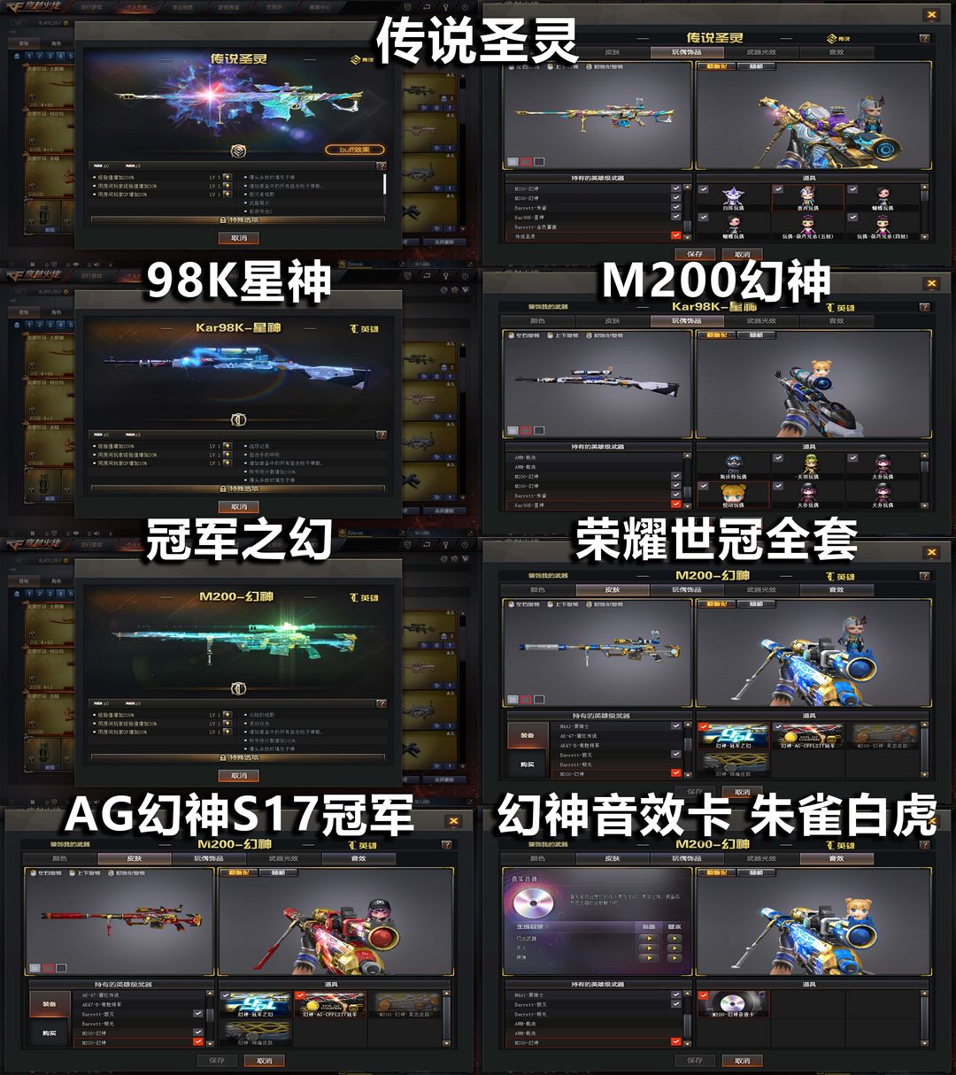 AG冠军之幻+幻神音效卡❤传说圣灵星神QBZ白虎❤生化6烈龙蝴蝶看血佣兵觉醒❤冠军之武心怒世冠套雷暴