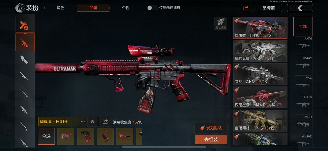 装备描述:30级,历史最高段位:暗区传说【近战武器】:三尺万仞战术剑,寒牙手刺,下弦月,涂鸦利刃,工兵铲,来战开山刀;【手套】:玉鸾挂枝手套,禁忌力量手套;【角色皮肤】:都护铁衣战术甲胄,黑暗行者特摄戏服,都市夜影套装,黑金指挥官作战服;【突击步枪】:火力倾泻AKM,缟兵玄墨AKM,来战AKM,历战AKM,,深暗星云M4A1,竞技M4A1,,黑金国际M4A1,秋宴FAL,堕落者H416,自喷网络H416,涂鸦AK102,来战AK74N,山地伪装AK74N,,竞技数码AK74N,,白狼连队AK74N,骑士之剑AKS74U,最后防线AKS74U,火力倾泻AUG,竞技AUG,,极恶AUG,自喷网格AUG,雪山之王F2000,钢铁真理F2000,炎夏浪花AR57,涂绘猎人AR57,无声暗月AR57,湖冰倒影ACE31,最后防线AEK,盛冬AN94,森林迷彩T951,玄戈梨花T03,缟兵玄墨T03,北国内卫AK12,07式林地迷彩QBZ191;【冲锋枪】:火力倾泻MP5,湖冰倒影盾MP5,森林迷彩MP5,雪山之王MPX,缟兵玄墨MPX,玄戈梨花MPX,灰鼠幻歌P90,无彩调色P90,滑雪季UMP45,自喷