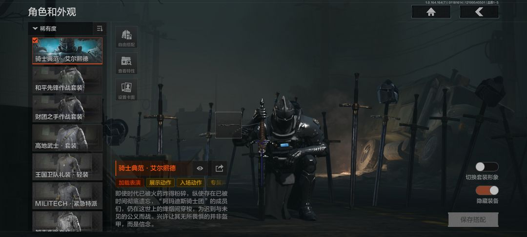 4刀8皮2金枪,骑士典范艾尔熙德,盘牙彻甲短刃,野战折刀,工兵铲,来战开山,竞技FAL,历战AKM