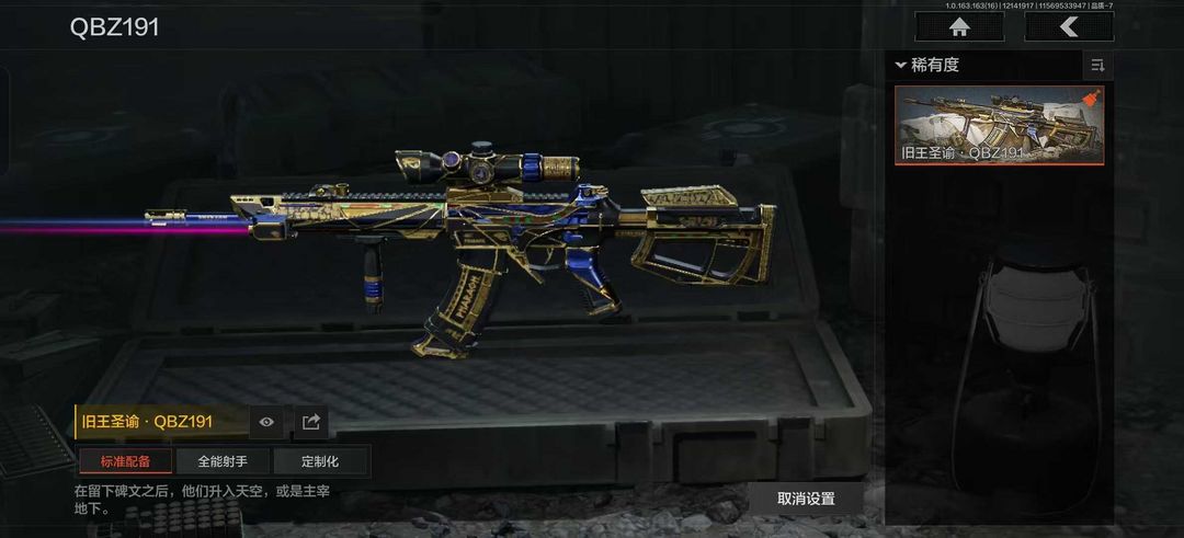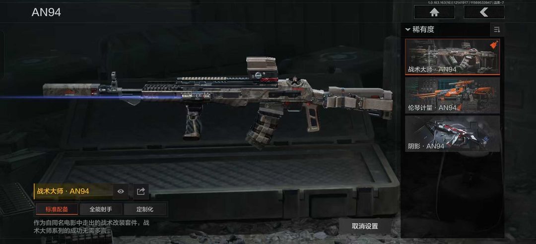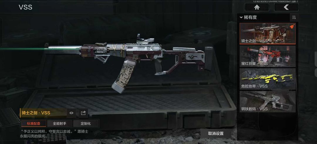 装备描述:空腔战术 骑士之剑·VSS 旧王圣谕·QBZ191 战术大师·AN94