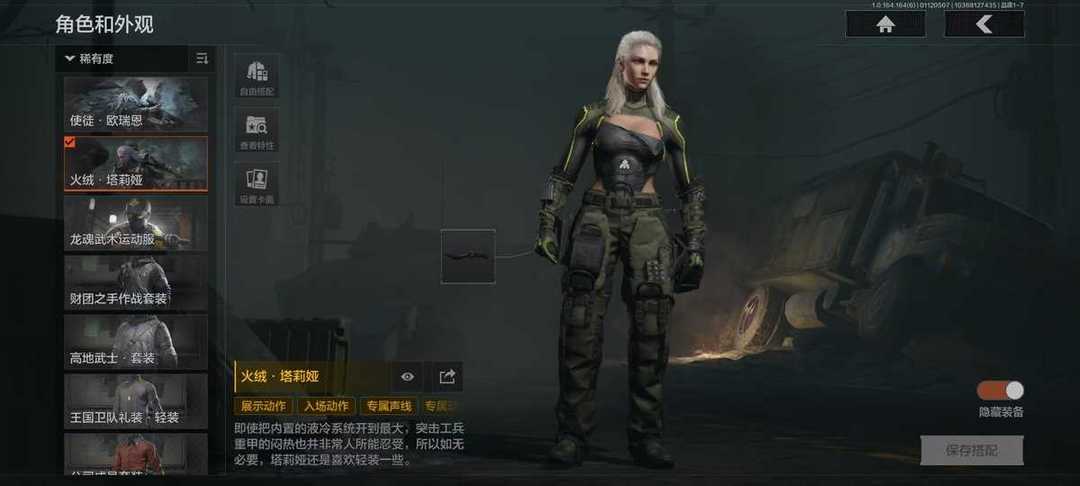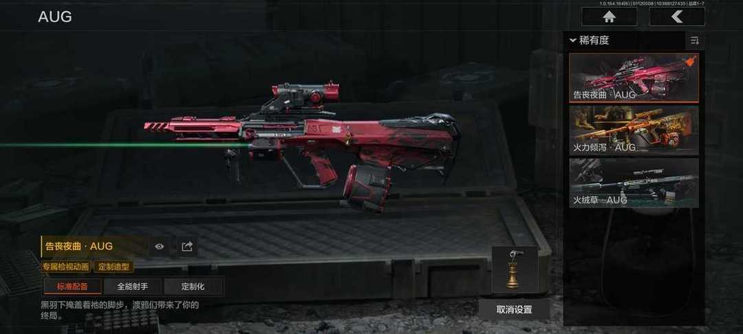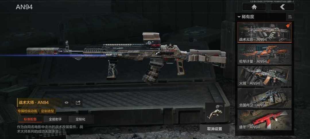 装备描述:角色皮肤】:使徒欧瑞恩、火绒塔莉娅、龙魂武术运动服、高地武士套装、财团之手作战套装 【近战武器】:热能武器补牢、不屈烈怒、急袭弯刀、霜狼生存刀、来战开山刀 【突击步枪】:包络战术AKM、棱光裂变AKM、火力倾泻AKM、来战AKM、竞技MDR、北国内卫MDR、骑士之剑AKS74U、炎夏浪花AR57、棱光裂变AK102、火力倾泻AUG、旗帜AEK、和平之手FAL、战术大师AK74N、棱光裂变AK74N、来战AK74N、火绒AK12、战术大师AN94、伦琴计量AN94、典礼武备MCX、典礼武备Groza、巡林客T951、林地数码T03、旧王圣谕QBZ191、07式林地迷彩QBZ191、莫克斯AKS74U、告丧夜曲AR57、涂绘猎人AR57、潜渊蛇鳞M4A1、骤羽尖啸M4A1、德尔塔小队M4A1、告丧夜曲AUG、火绒草AUG、狂怒荣耀AEK、伦琴计量AK74N、山地伪装AK74N、雪山之王F2000、火绒AN94、北国内卫AN94、利齿风暴T03、武侍FAMAS 【冲锋枪】:高塔之内P90、鱼跃丹青T85、利齿风暴T79、战术大师Suomi、湖冰倒影MP5、利齿风暴MPX、骤羽尖啸MPX、玄戈