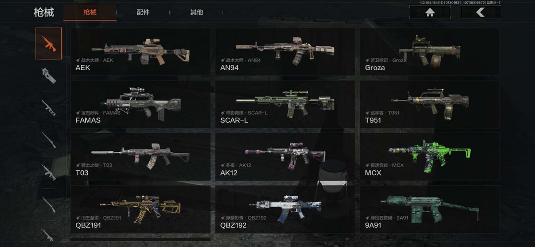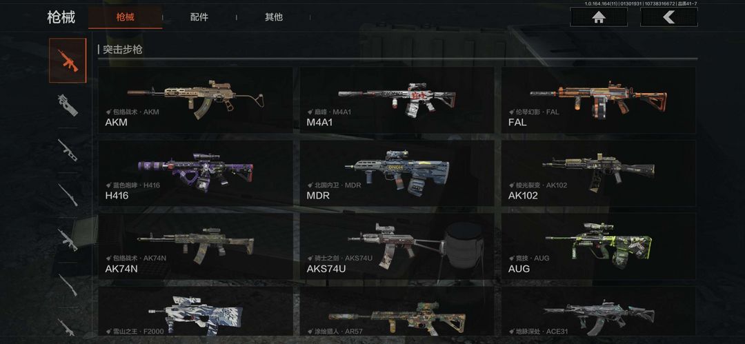 这个账号算个小顶级,账号不低于20款金色枪械皮肤。有一亿多的存款