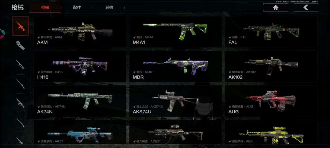 约有41个枪皮,一些套装, 十多个装备皮肤,有5500万纯币