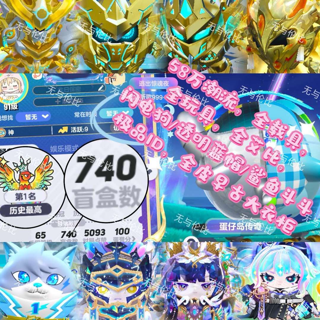 58万潮全皮⚡740盲盒⚡满级尊赏⚡闪电狗蓝帽小丑院长⚡全机甲⚡主播鲨鱼⚡全载具⚡历史榜一⚡极品ID