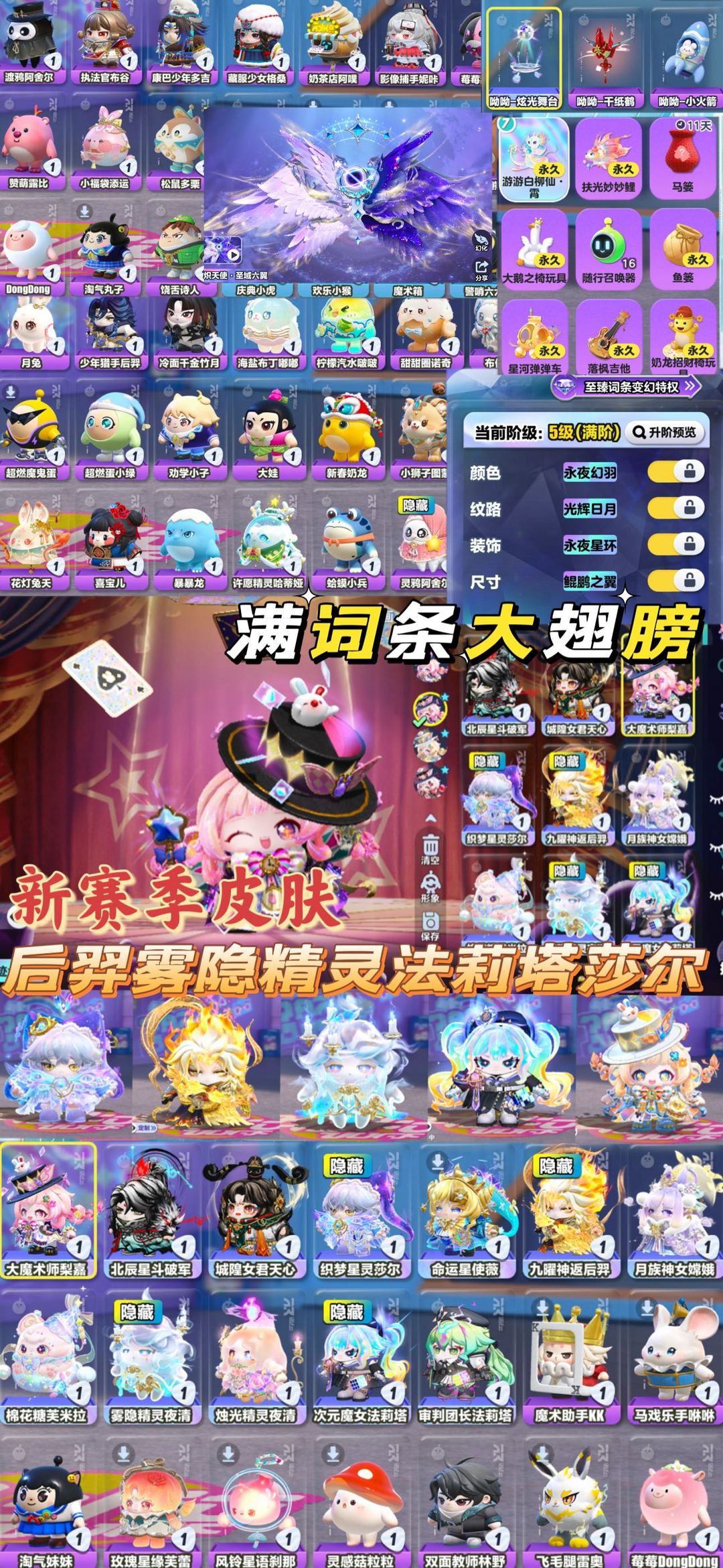 满词条翅膀/魔术师梨嘉/法莉塔/神返后羿/雾隐精灵/织梦星灵莎尔/满阶蛇车/小羊/星斗破军棉花糖芙拉