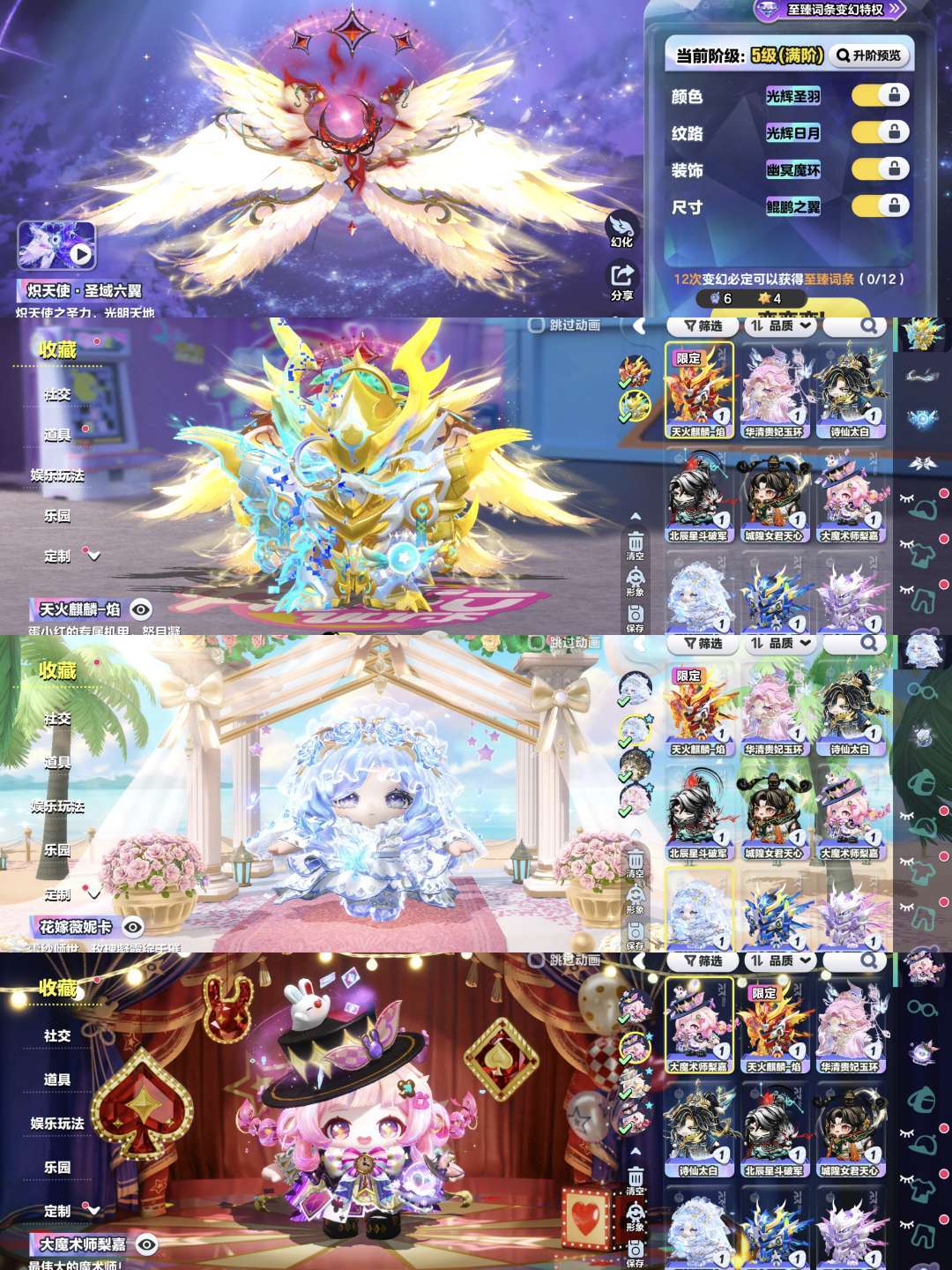 满级天官⚡锦绣长安录⚡满级百变羽翼⚡星星马车⚡大蛇车⚡染色天火麒麟⚡魔术师梨嘉⚡花嫁