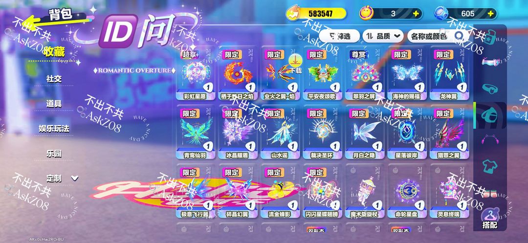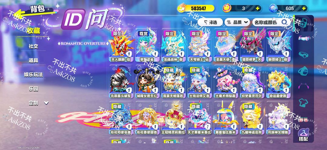 58w潮流☀️全皮号☀️:全隐藏⚡五阶满词条羽翼⚡全载具⚡闪电阿存隐匿小丑欢宴园长⚡主播号