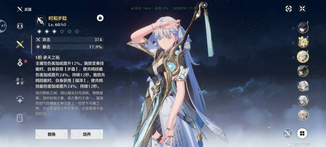 装备描述:今汐加专武,维里奈,嘉贝莉娜,卡卡罗,凌阳,仇远