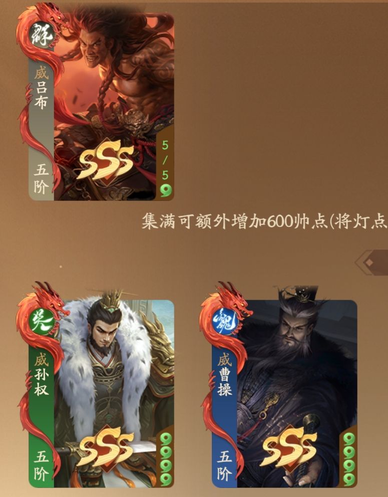 装备描述:威吕布,威孙权,威曹操,谋司马懿,谋陈琳,谋邓艾,谋吕蒙,谋陈琳,谋曹昂,谋胡烈,神钟会,神黄忠,乐周瑜,袁胤,夏侯微,袁姬,马均,裴秀,张焕,文鸳,孙綝等