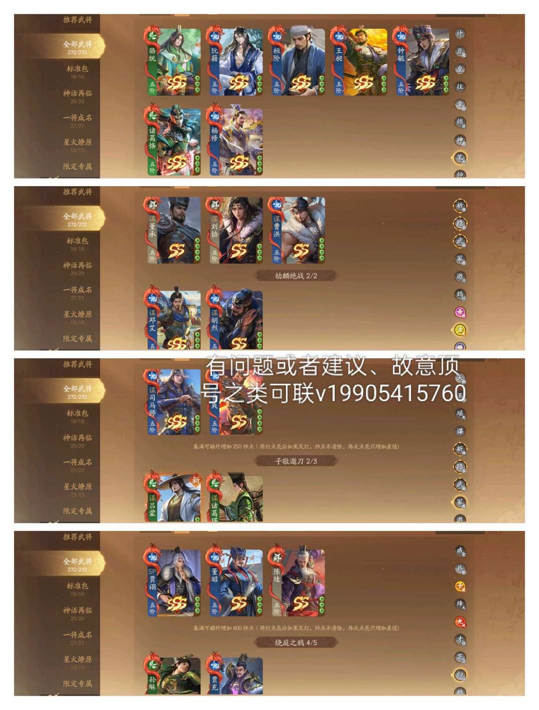 装备描述:认准服务器,电脑手机都可以登录,一定是4399服的才可以玩。电脑端只需在网页搜索4399进入三国杀一将成名官网即可登录,手机端需要下载4399游戏盒,在游戏盒里下载三国杀一将成名,即可畅玩,手机官网和其他渠道均不可登录。 逃跑毁号拉黑,恶意撤单还游戏的就别来恶心人了,自己不差那两个钱,真租不起单独告诉我我送你几个小时玩。 到时不顶,如果到时下线就是有人提前预约或者在别的平台租了,懂得都懂。最后大家游戏愉快。