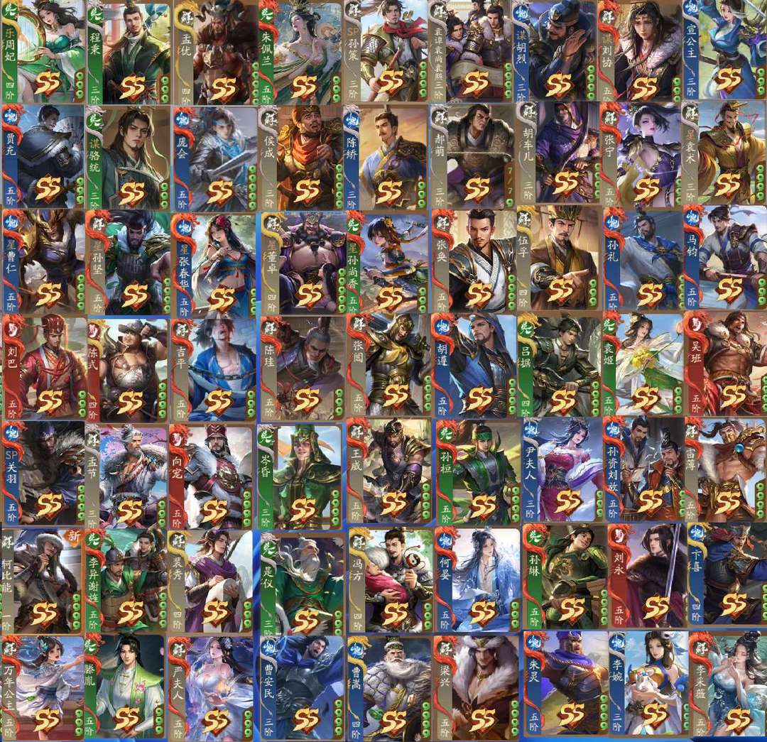 装备描述:强将举例:威曹操,夏侯玄,谋郭嘉,神黄忠,神马超,神张飞,神华佗,神姜维,曹金鱼,曹芳,南华老仙,张怀,芮姬,谋邓艾,夏侯徽,乐诸葛果,乐貂蝉,乐蔡文姬,乐周瑜,诸葛均,谋司马师,乐周妃,朱佩兰等等 saa曹纯,ssa关锁,ssa张琪瑛 信誉分,三卡充足