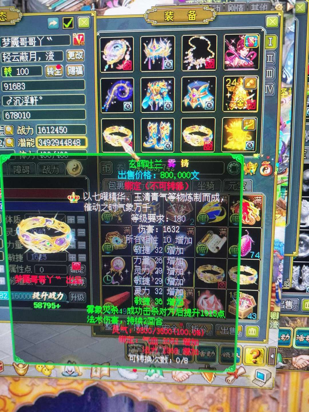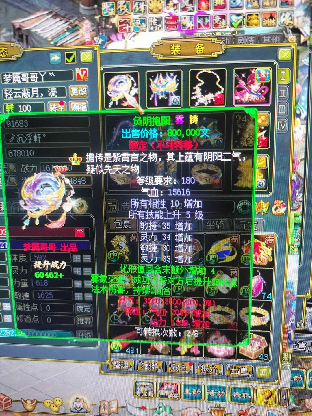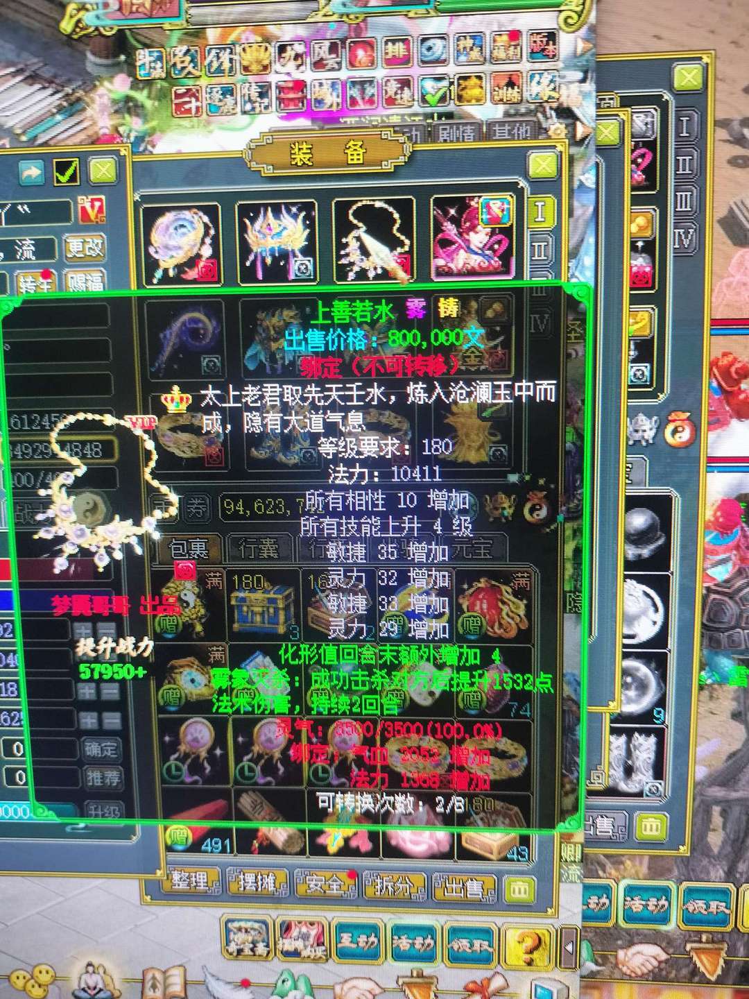 装备描述:游戏体验,极品化形火蛇,超级底子,十速大金猪